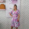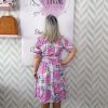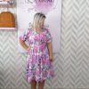 Vestido Isabel com flores lilás decote e V com botões e Cinto comp 95% Poliester 5% elastano TU serve SML