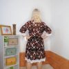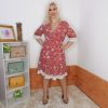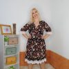 Vestido Julia estampado estampado com decote de trespasse com renda branca na manga e na base com elástico na cintura ( Serve S M L)